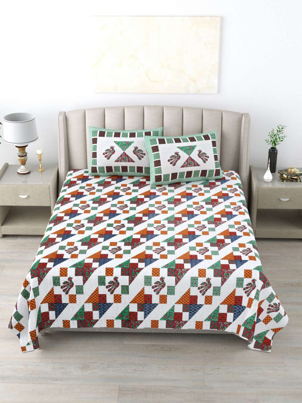 100% Pure Cotton Traditional Printed Bedsheet for Double Bed King Size Bedsheet with 2 Pillow Covers